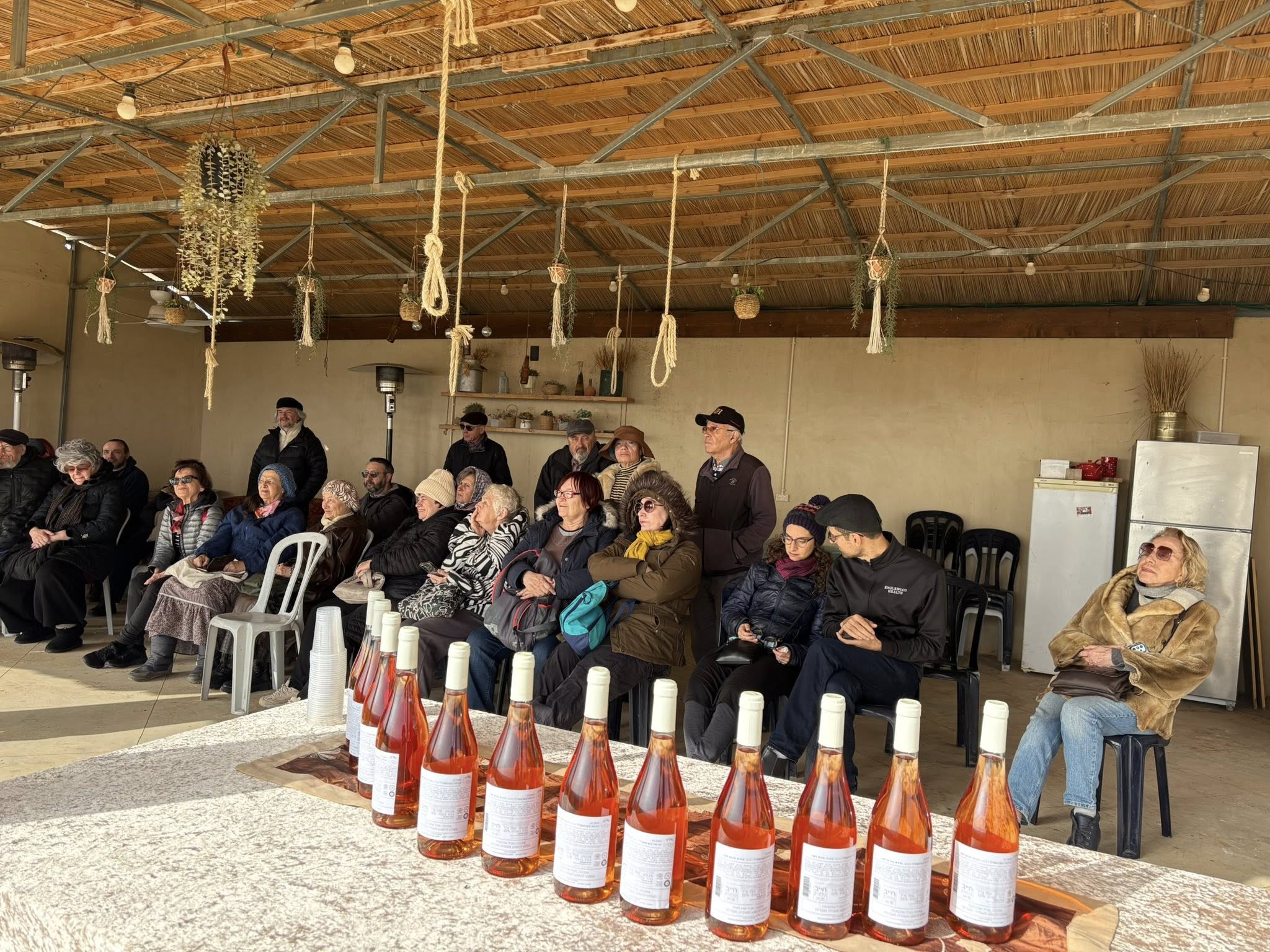 Под предводительством нашего замечательного гида Ицхака Фишелевича, побывали на трех новых фермах Хевронского нагорья. Первая точка — ферма Ман (משק מן). Здесь занимаются не только скотоводством, но и виноградарством. Хозяин фермы Иссахар Ман потомственный винодел, его родители создали знаменитую винодельню в Бейт Эле. Иссахар рассказал нам про свою ферму, которая существует уже пять лет. О том, что создал он всё своими руками, закупал скот и оборудование на свои деньги. Государство помогает со всем, связанным с обеспечением безопасности. Мы продегустировали вино, которое производит Иссахар, и конечно же, многие из нас не преминули прикупить себе бутылочку.